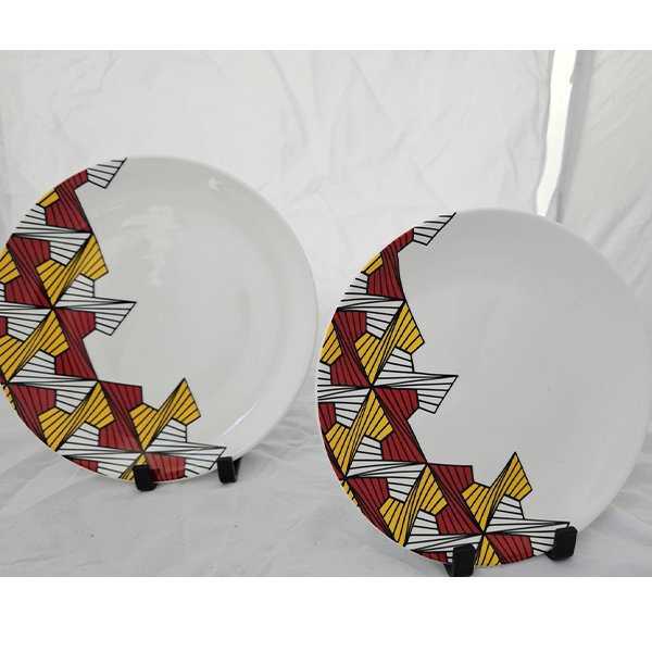 L’assiette Ypass est un hommage à l’exubérance des tissus wax aux motifs éclatants, symbole de joie et de fierté en Afrique de l’Ouest. Ses dessins floraux stylisés et ses arabesques géométriques en jaune doré, rouge vif et blanc immaculé reflètent les célébrations, les mariages et les fêtes traditionnelles. Avec ses détails minutieux, elle transforme chaque repas en une immersion festive et colorée.